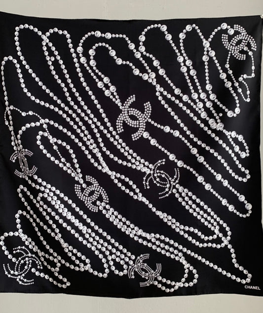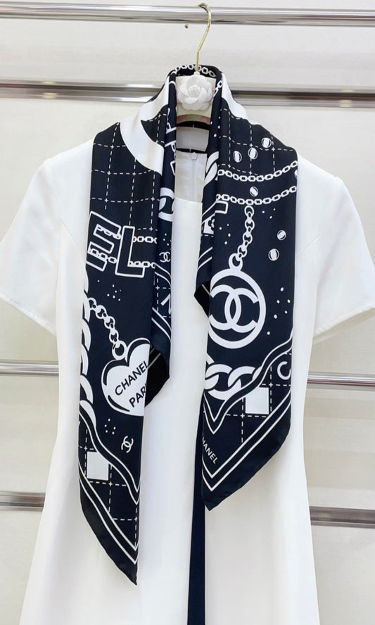 Black and white C silk headscarf 88.5x88.5cm preorder