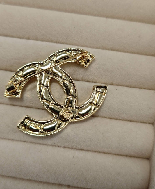 Gold plated C pin brooch preorder