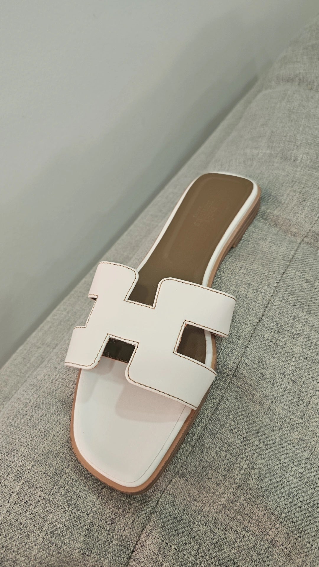White Soft Leather H Slides preorder